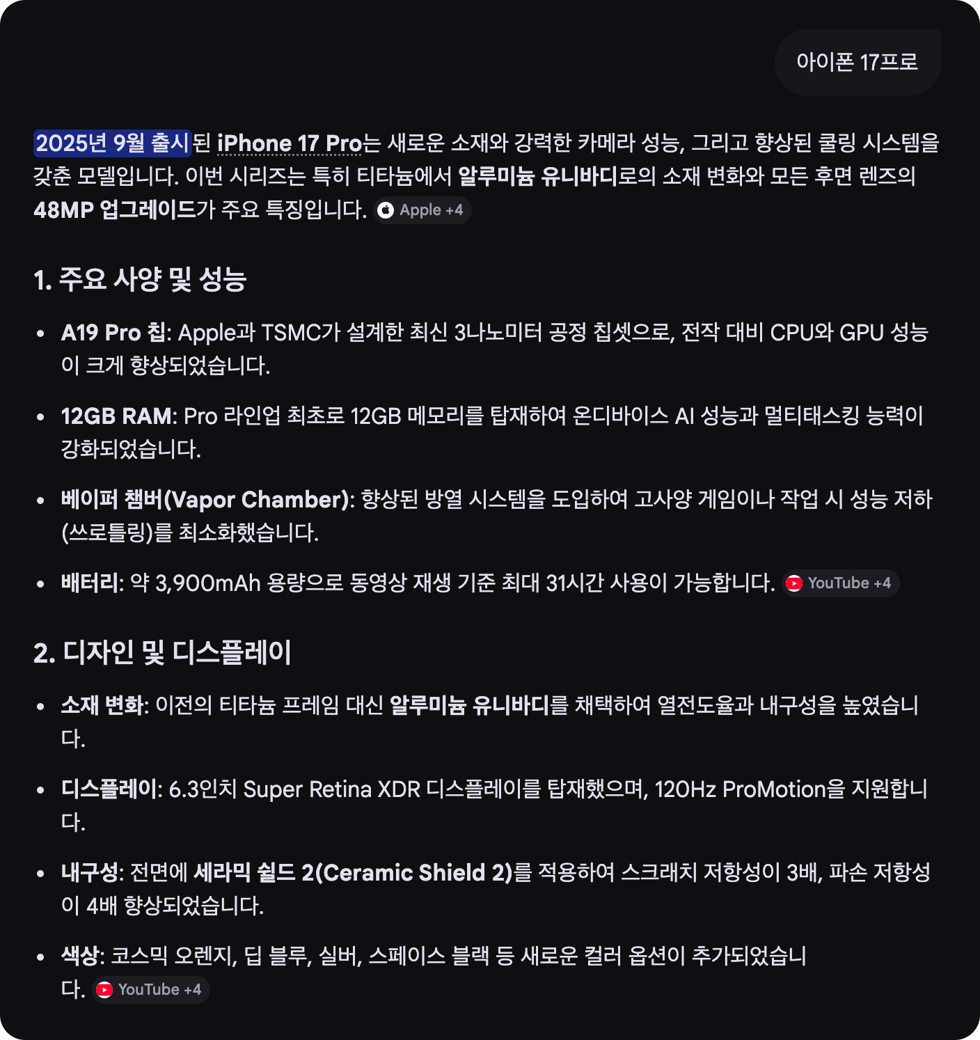 사실 예전에는 개발자가 사용하는 AI와 일반 유저들이 사용하는 AI의 갭이 되게 컸다고 생각했습니다. chatGPT가 등장했을 당시에도 약 1~2년 동안은 지피티는 멍청해, 내가 원하는 답변을 안해줘 라는 식의 얘기를 하는 사람들도 많았고, 이미지 생성 기술도 많이 떨어졌습니다. 하지만 요즘은 어떤 검색 엔진에 접속을 하더라도 AI 기반 추가 서칭 결과가 포함되어 있는 것을 볼 수 있고, 그 퀄리티도 나름대로 괜찮습니다.